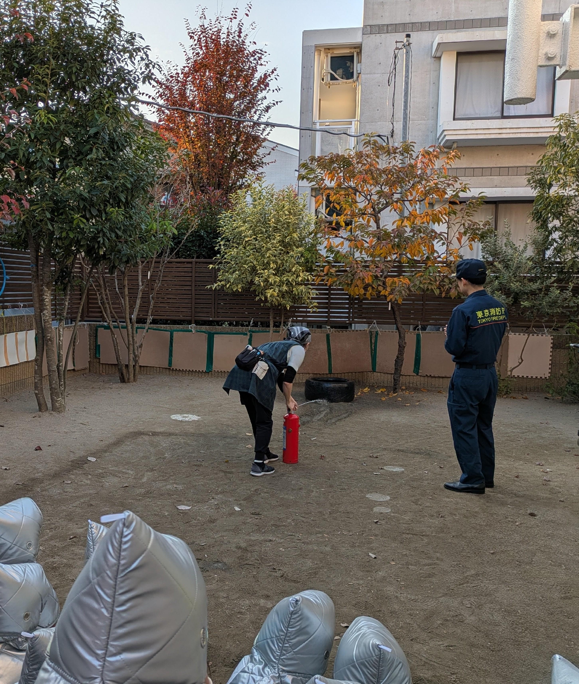 「火事です、火事です!」と呼び掛け、初期消火に入ります。