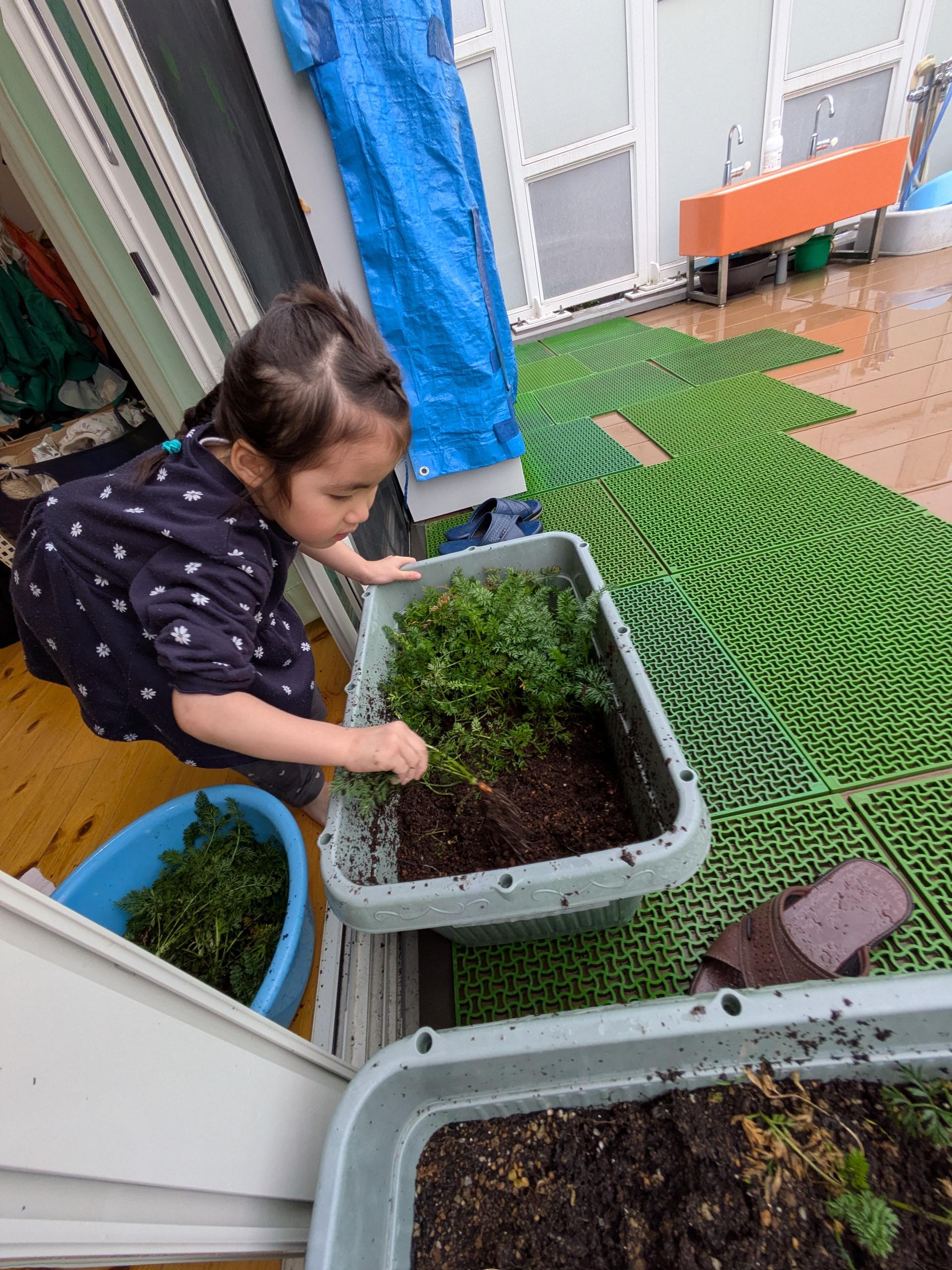 根元を持って抜くことを知らせると力いっぱい抜いて無事に収穫できました!