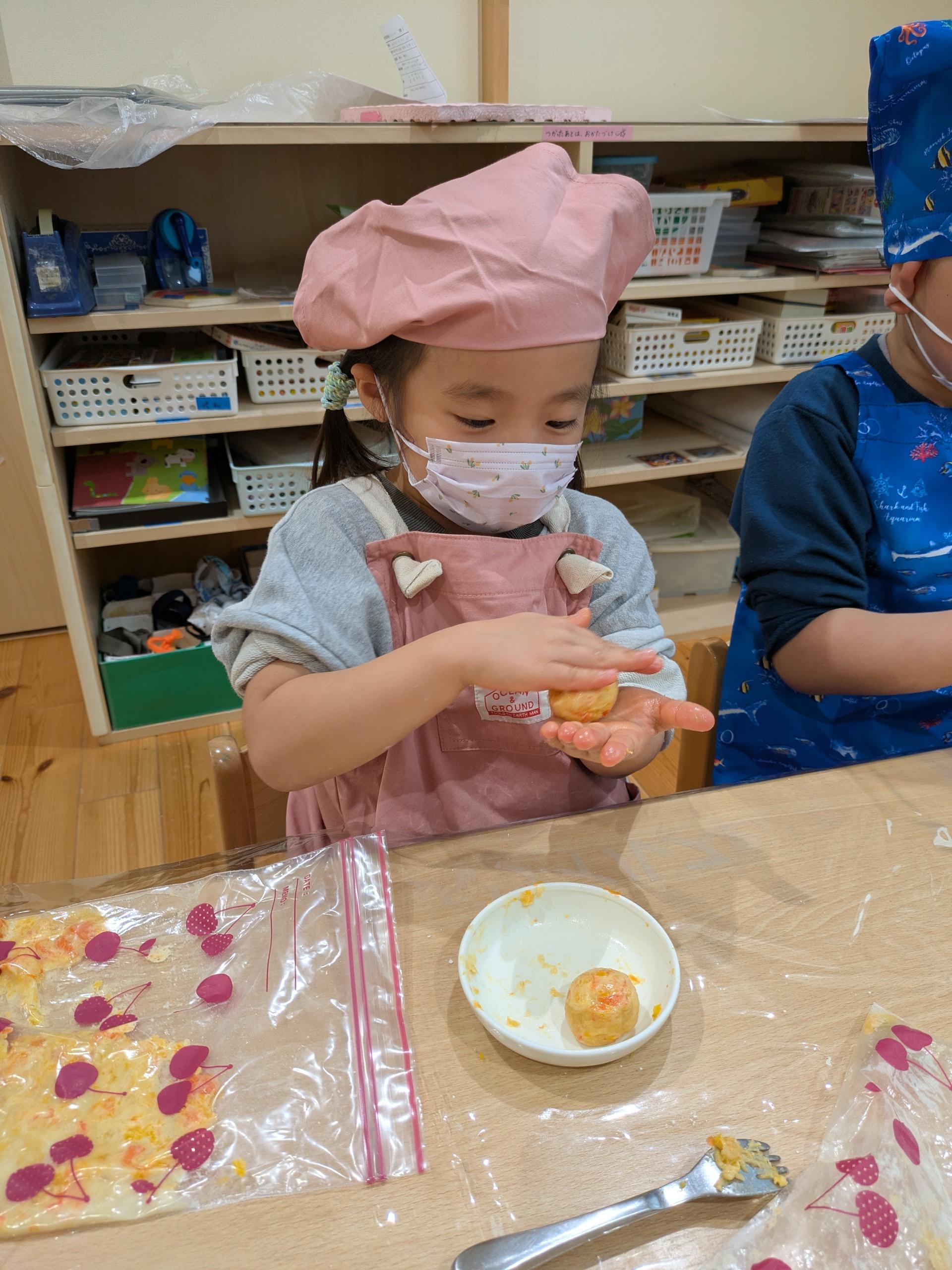 さくら組(3歳児)が栽培した人参を収穫してクッキーにしました!